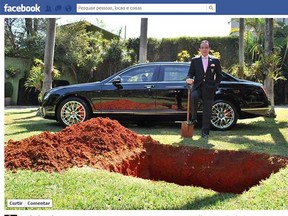 Nesta terça, ele postou a foto de um buraco, onde diz que vai enterrar o carro. "Para quem está duvidando, ontem mesmo já comecei a fazer o buraco no jardim para enterrar meu Bentley! Até o fim da semana eu enterro ele!", disse.