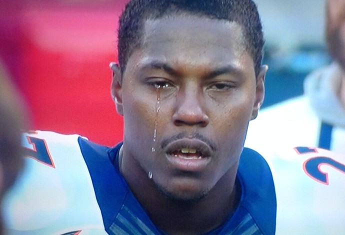 Knowshon Moreno, running back do Denver Broncos, derrama lágrimas em